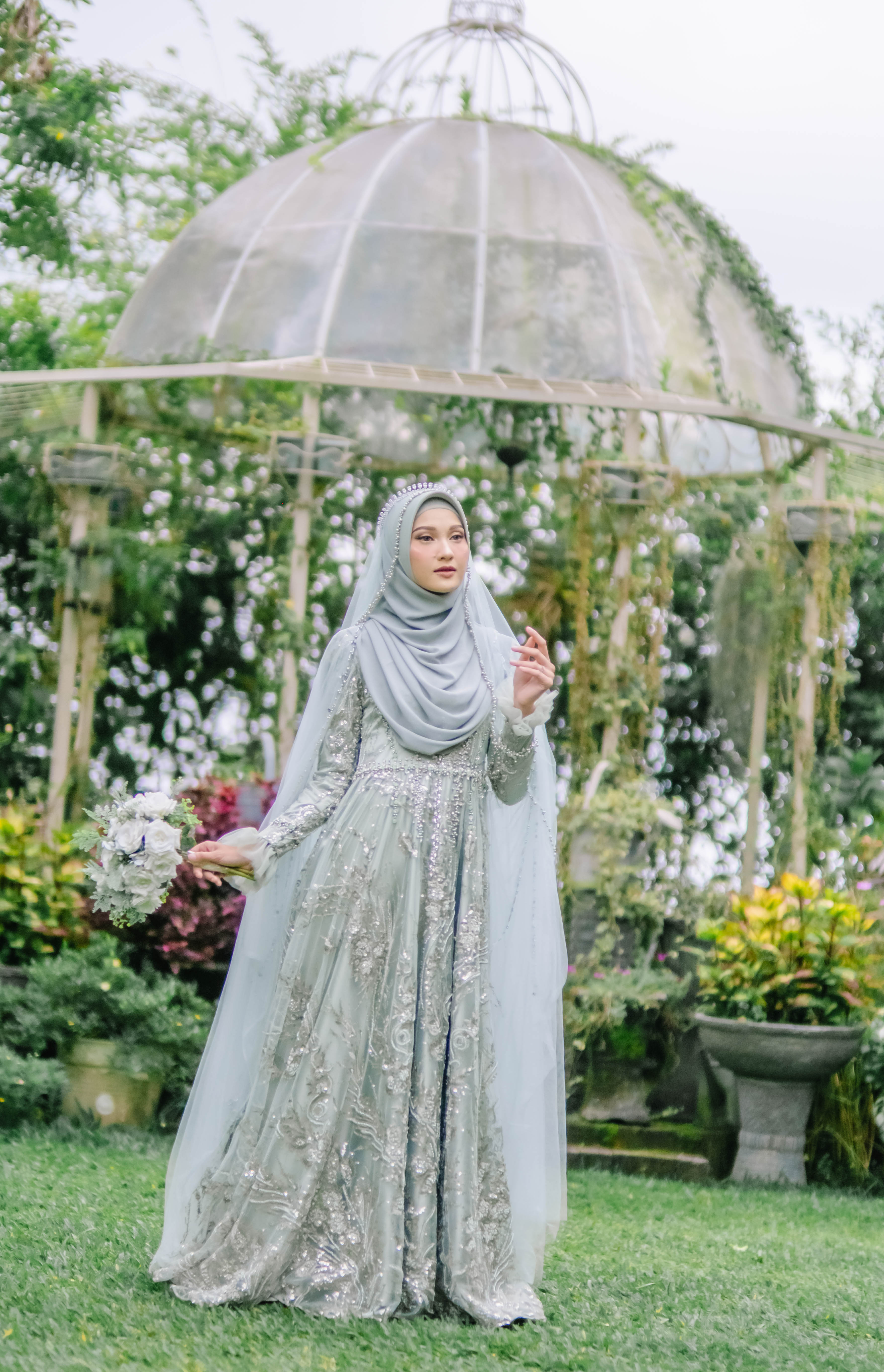 Gaun pengantin muslim berkualitas tinggi dengan desain elegan dan modern. Cocok untuk acara pernikahan yang berkesan dan istimewa.